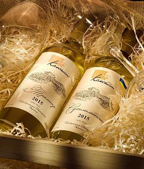 Виготовлено з винограду українського сорту – Сухолиманський бiлий. Цей сорт винограду був виведений у 2-ій половині XX століття в Україні. Український прапор на лицьовій етикетці символізує, що вино виготовлено з винограду українського сорту.