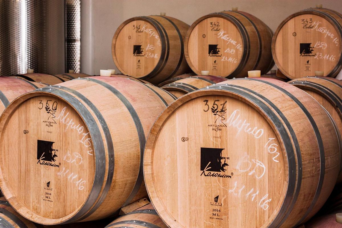 Виготовлено з винограду сортів Каберне-Совіньйон та Мерло власних плантацій ТМ «Колоніст».