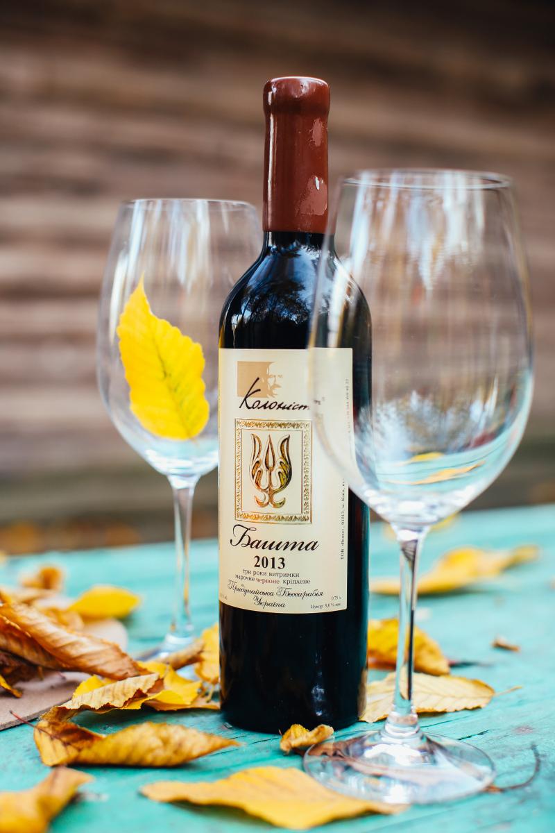 Виготовлений Портвейн «Башта» з сортів винограду Каберне-Совіньйон і Мерло власних плантацій ТМ «Колоніст», в придунайській Бессарабії (південно-західна частина Одеської області).