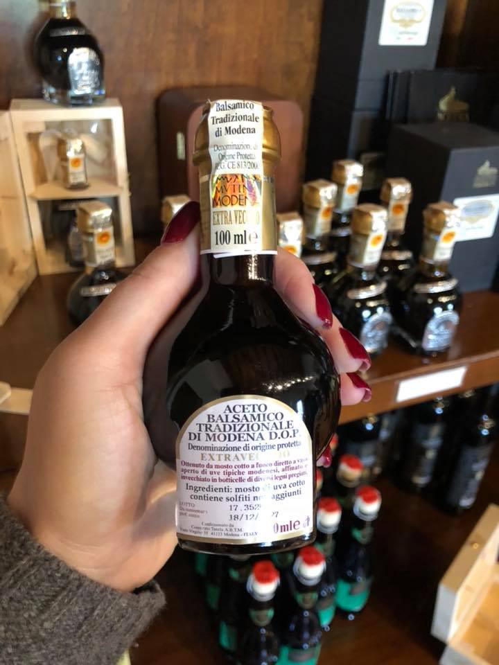 Італійці обожнюють бальзамічний оцет і дякують Богові за те, що саме Італія вважається місцем народження цього шляхетного продукту. Саме тому італійці з Модени звернулися до одного з найвідоміших автомобільних дизайнерів в світі, пана Джорджетто Джуджаро, який працював з найвідомішими марками автомобілів, створюючи дизайн для Феррарі, Бугатті, Пагані. Вони попросили його придумати пляшечку, в яку буде розливатися бальзамічний оцет, і яка буде впізнаваною в усьому світі. Джуджаро поєднав у формі пляшки бочонок для оцту і архітектурні риси центрального собору в Модені. І завдяки цьому творчому союзу весь світ тепер знає, як виглядає Aceto Balsamico Tradizionale di Modena класичний бальзамічний оцет на полиці. Така пляшка може мати тільки один обсяг - 100 мл. Колір ковпачка вам одразу підкаже тривалість витримки: червоний - old (від 12 до 25 років витримки) і золотий - extra old (більше 25 років витримки).